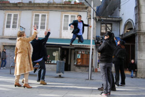 El equipo de la productora luguesa, Rodaxe Xestión Audiovisual, llegaba con sus componentes a la céntrica Plaza Arquitecto Antonio Palacios el mediodía del domingo, donde se reunían con las concursantes que participarían en el primer programa de esta edición de “Máis Galego Nadal”.